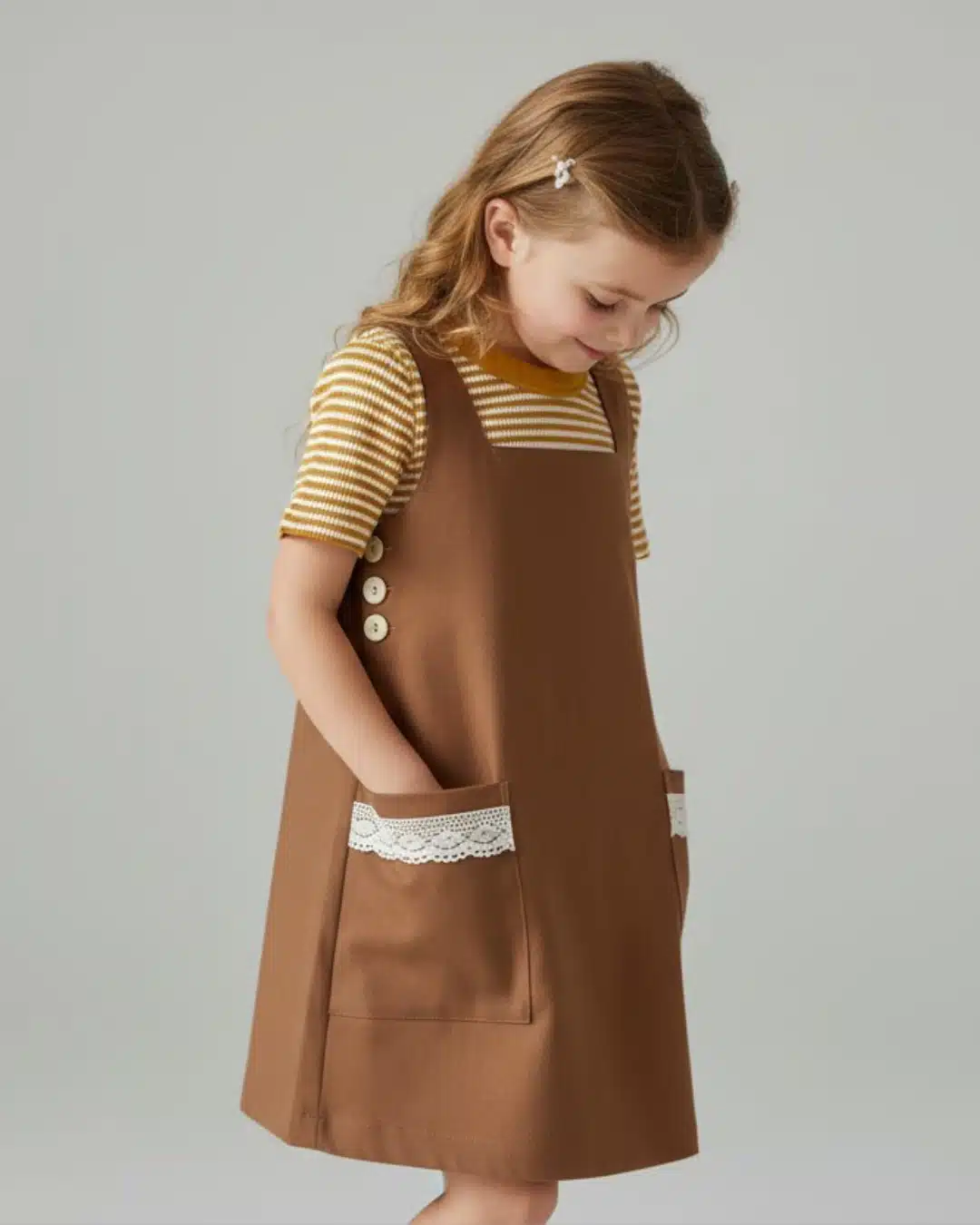 One of Harvest’s standout features is its suitability for layering, making it an excellent choice for those who love to experiment with different styles. Whether paired with a cozy sweater for a winter look or a simple tee for a breezy summer ensemble, this pinafore dress adapts to your fashion preferences with ease.